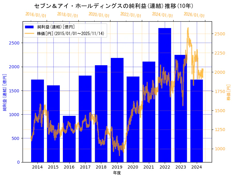 純利益グラフ一覧 グラフで探す 2025.11.26 スポンサーリンク 空運業 日本航空 ANAホールディングス 建設業 ショーボンドホールディングス ミライト・ワン コムシスホールディングス 大成建設 大林組 清水建設 長谷工コーポレーション 鹿島建設 西松建設 戸田建設 五洋建設 住友林業 大和ハウス工業 積水ハウス 関電工 きんでん エクシオグループ 九電工 日揮ホールディングス 高砂熱学工業 インフロニア・ホールディングス 鉱業 INPEX 小売業 エービーシー・マート ビックカメラ MonotaRO J.フロント リテイリング マツキヨココカラ&カンパニー ZOZO 三越伊勢丹ホールディングス ウエルシアホールディングス すかいらーくホールディングス コスモス薬品 セブン&アイ・ホールディングス ツルハホールディングス トリドールホールディングス クスリのアオキホールディングス FOOD & LIFE COMPANIES 良品計画 パン・パシフィック・インターナショナルホールディングス ゼンショーホールディングス コロワイド スギホールディングス 日本瓦斯 しまむら 高島屋 エイチ・ツー・オー リテイリング 丸井グループ イオン イズミ ケーズホールディングス アインホールディングス ヤマダホールディングス ニトリホールディングス 吉野家ホールディングス ファーストリテイリング サンドラッグ 証券、商品先物取引業 SBIホールディングス ジャフコ グループ 大和証券グループ本社 野村ホールディングス 情報・通信業 日鉄ソリューションズ TIS コーエーテクモホールディングス ネクソン SHIFT ガンホー・オンライン・エンターテイメント GMOペイメントゲートウェイ インターネットイニシアティブ ラクス マネーフォワード ビジョナル 野村総合研究所 メルカリ JMDC フジ・メディア・ホールディングス オービック LINEヤフー トレンドマイクロ 日本オラクル オービックビジネスコンサルタント 大塚商会 BIPROGY TBSホールディングス 日本テレビホールディングス 日本電信電話(NTT) KDDI ソフトバンク 光通信 GMOインターネットグループ KADOKAWA 東宝 スクウェア・エニックス・ホールディングス カプコン SCSK NSD コナミホールディングス ソフトバンクグループ 前へ次へ 12345